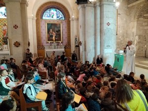 Chaque classe avait découvert en amont la vie d’un Saint dont ils sont venus déposer le portrait sur une