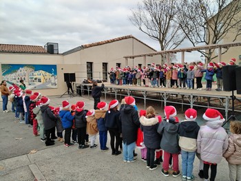 Féeries de Noël RETOUR Cette année , ce sont les élèves de l’école qui ont fait l’ouverture du marché de Noël du village vendredi à 17h. Comme tous les grands artistes, ils ont eu besoin de répéter avant le grand moment!!!!! RETOUR